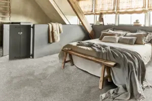 Der Associated Weavers Dorado, Gaia 90 Teppichboden bietet mit seiner 5-Meter Breite eine großzügige Abdeckung für verschiedene Wohnräume. Dieser hochqualitative Kr e4uselvelour-Teppichboden, hergestellt von Associated Weavers, kommt in einem eleganten Grauton und gehört zur exklusiven Dorado, Gaia Kollektion.