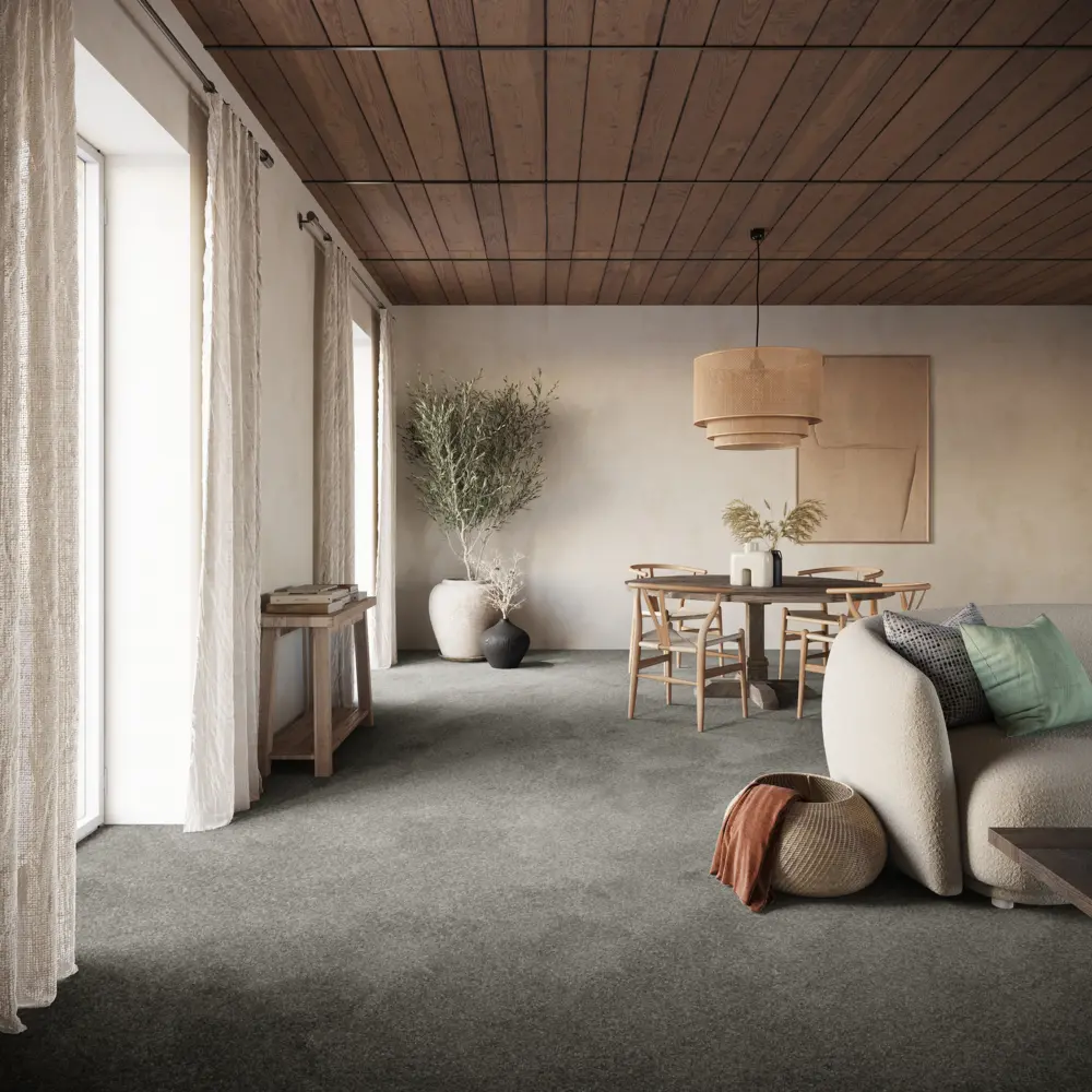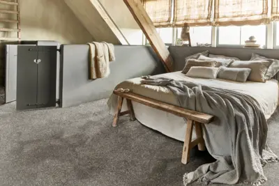 Der Dorado Teppichboden von Associated Weavers verbindet modernes Design mit hoher Funktionalität. Diese Ausführung in Grau (Farbnummer 95) ist Teil der Kollektion Dorado, Gaia und beeindruckt durch eine 4-Meter Breite, die sich ideal für großflächige Bereiche eignet.