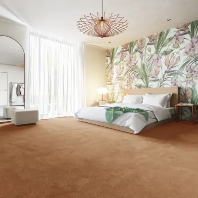 Der Teppichboden von Associated Weavers, bekannt unter dem Namen GAIA 82 (FINUSTA82400P), beeindruckt durch seine 4 Meter Breite und die auffällige orange Farbgebung. Die Kollektion "Indus, Gaia" vereint stilvolles Design mit hochwertiger Verarbeitung.