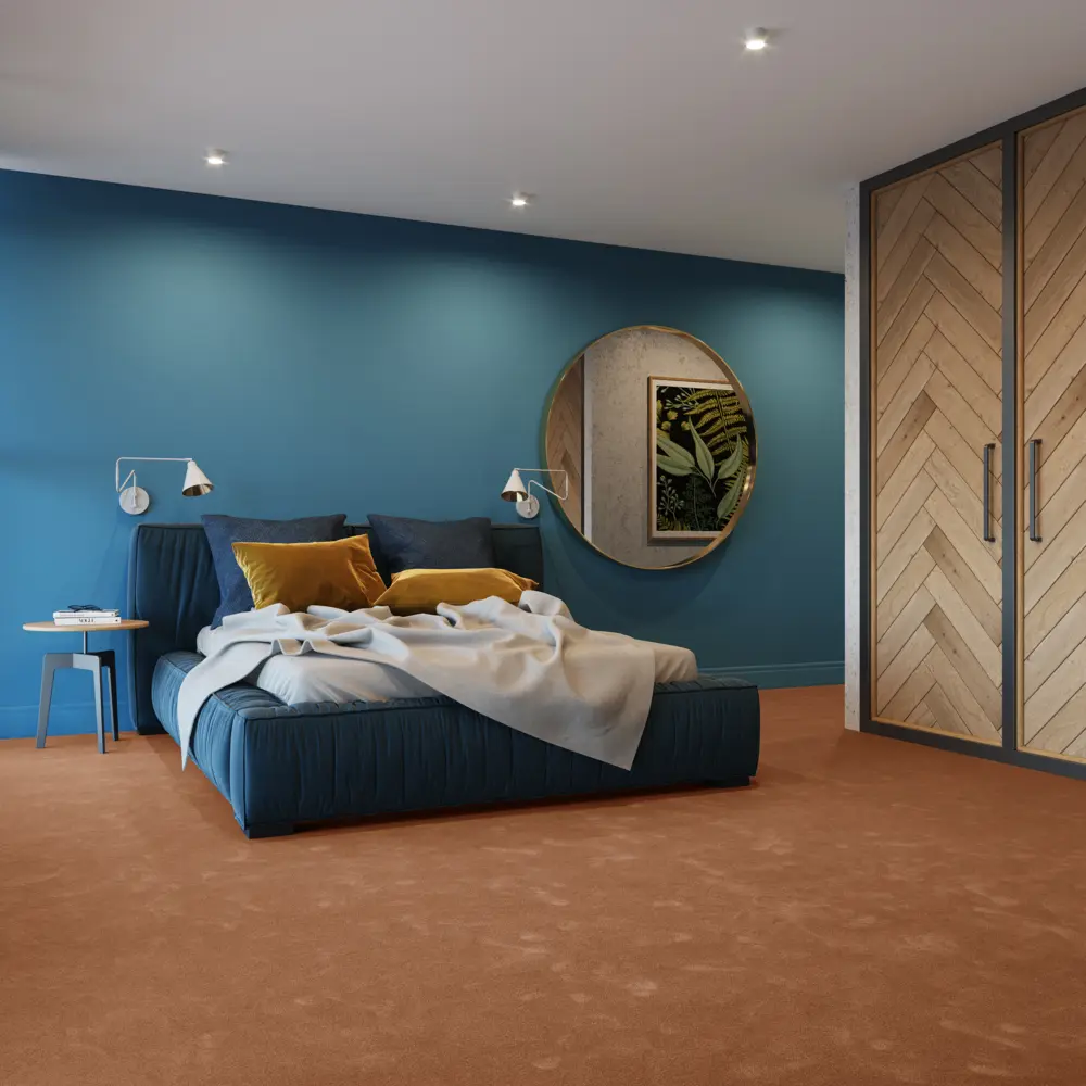 Mit einer großzügigen Breite von 4 Metern eignet sich dieser Teppichboden ideal für Wohn- und Arbeitsbereiche, ob Wohnzimmer, Schlafzimmer, Homeoffice oder gewerblich genutzte Räume. Sein feiner, dichter Flor aus strapazierfähigem Polyamid sorgt für luxuriösen Komfort und Langlebigkeit. Dank moderner Tufting-Technik und einem Gesamtgewicht von 2760 g/m² bietet der Bodenbelag eine angenehme Trittschalldämmung von etwa 34 dB und unterstützt eine ruhige Atmosphäre.