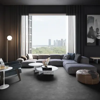 Der Associated Weavers SATISFACTION 98 ist ein hochwertiger Teppichboden in einer Breite von 4 Metern mit der Farbnummer 98, in einem eleganten Schwarzton. Die Kollektion Satisfaction, Sensualite von Associated Weavers vereint Komfort und Stil perfekt.