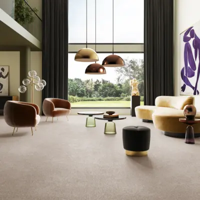 Der "Associated Weavers Secret New, Sensualite 39" Teppichboden verkörpert Qualität und anspruchsvolles Design in einer Breite von 5 Metern. Der Kräuselvelour-Teppich setzt durch seine dezente Beige Farbton einen eleganten Akzent in Ihrem Zuhause oder im Büro.