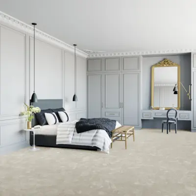 Der Teppichboden Seduction 03 aus der renommierten Sensualite-Kollektion von Associated Weavers begeistert durch seine hochwertige Kräuselvelour-Oberfläche und einen intensiven Weißton. Mit einer beeindruckenden Breite von 4 Metern eignet sich dieser Bodenbelag ideal für große Flächen im Wohn- und Objektbereich. Die Kombination aus einem Poleinsatzgewicht von 1350 g/m² und einer Polhöhe von ca. 11 mm sorgt für einen angenehmen Gehkomfort und eine luxuriöse Haptik.