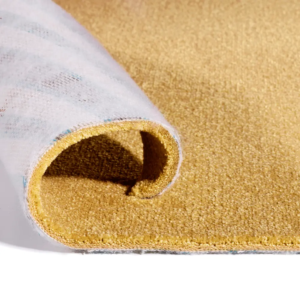 Der Teppichboden besticht durch seine ansprechende gelbe Farbe mit der Farbnummer 55. Er eignet sich hervorragend für gewerbliche Anwendungen sowie für den Einsatz im Homeoffice, Kinderzimmer, Schlafzimmer und Wohnzimmer. Der Teppich hat eine Gesamthöhe von 11,5 mm und ein Gesamtgewicht von 2330 g/m². Das Poleinsatzgewicht beträgt 1600 g/m², und die Polhöhe liegt bei etwa 9 mm. Hergestellt wurde der Teppich in einem Tufting-Verfahren, wobei das verwendete Polmaterial Polyamid ist, das unter dem Namen ECN bekannt ist. Die Nutzungs- und Komfortklassen sind 32 und 5, was für eine hohe Strapazierfähigkeit und Bequemlichkeit spricht. Zudem ist der Teppich kompatibel mit Fußbodenheizungen bis zu einer Oberflächentemperatur von maximal 27°C. Die Eignung für Stuhlrollen wird im privaten Bereich angegeben, jedoch ist der Teppich nicht für Treppenstufen geeignet.