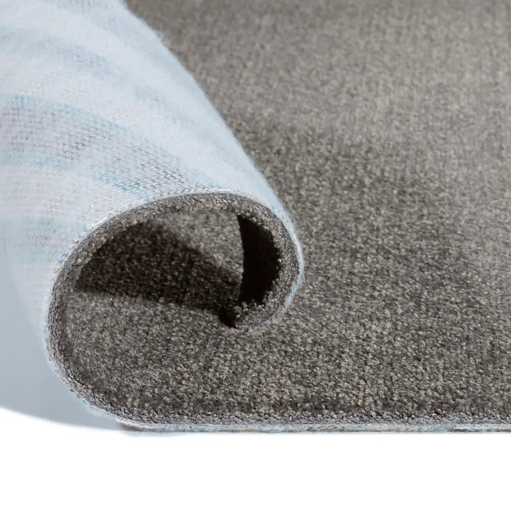 Der in Bahnenformat erhältliche Teppichboden hat eine Breite von 4 Metern und ist in einem eleganten Grauton (Farbnummer 98) erhältlich. Gefertigt aus hochwertigem Polyamid mit einer Polhöhe von ca. 9 mm und einem Poleinsatzgewicht von 1600 g/m², bietet er mit seinem Komfortwert von 5 höchsten Wohnkomfort.