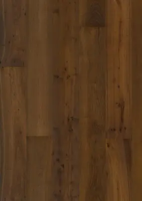 Das Bennett & Jones Grand Houses Oak No.16 – Buckingham überzeugt als hochwertiger Parkettboden und bringt ein edles Landhausflair in jeden Raum. Die markanten Breitdielen aus Eiche bieten eine natürlich schöne, braune Optik und unterstreichen durch die dunkel geräucherte, gebürstete und naturgeölte Oberfläche den exklusiven Charakter dieses Bodens. Die umlaufende Microfase und die lebhafte Sortierung sorgen für ein dynamisches, dennoch harmonisches Bild.