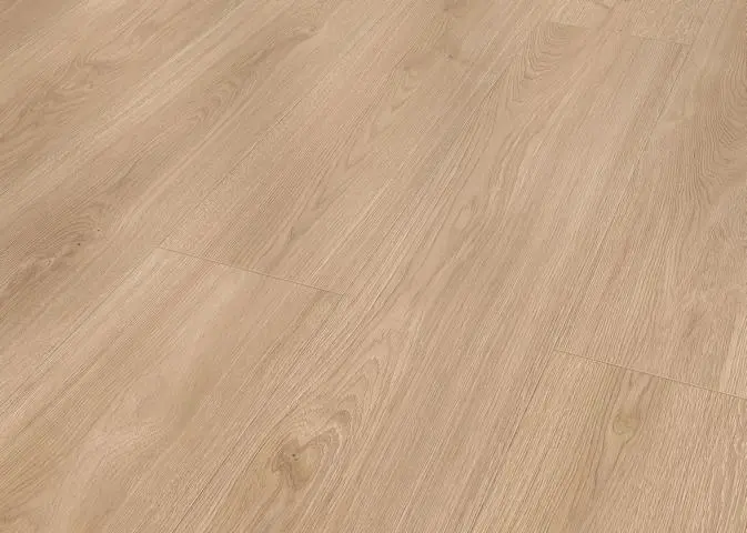 Die authentische Synchronstruktur sorgt für ein ruhiges, natürlich wirkendes Erscheinungsbild mit harmonischer Helligkeit im mittleren Bereich. Die vierseitige Fase unterstreicht den Dielencharakter und bringt die Landhausdiele besonders zur Geltung.