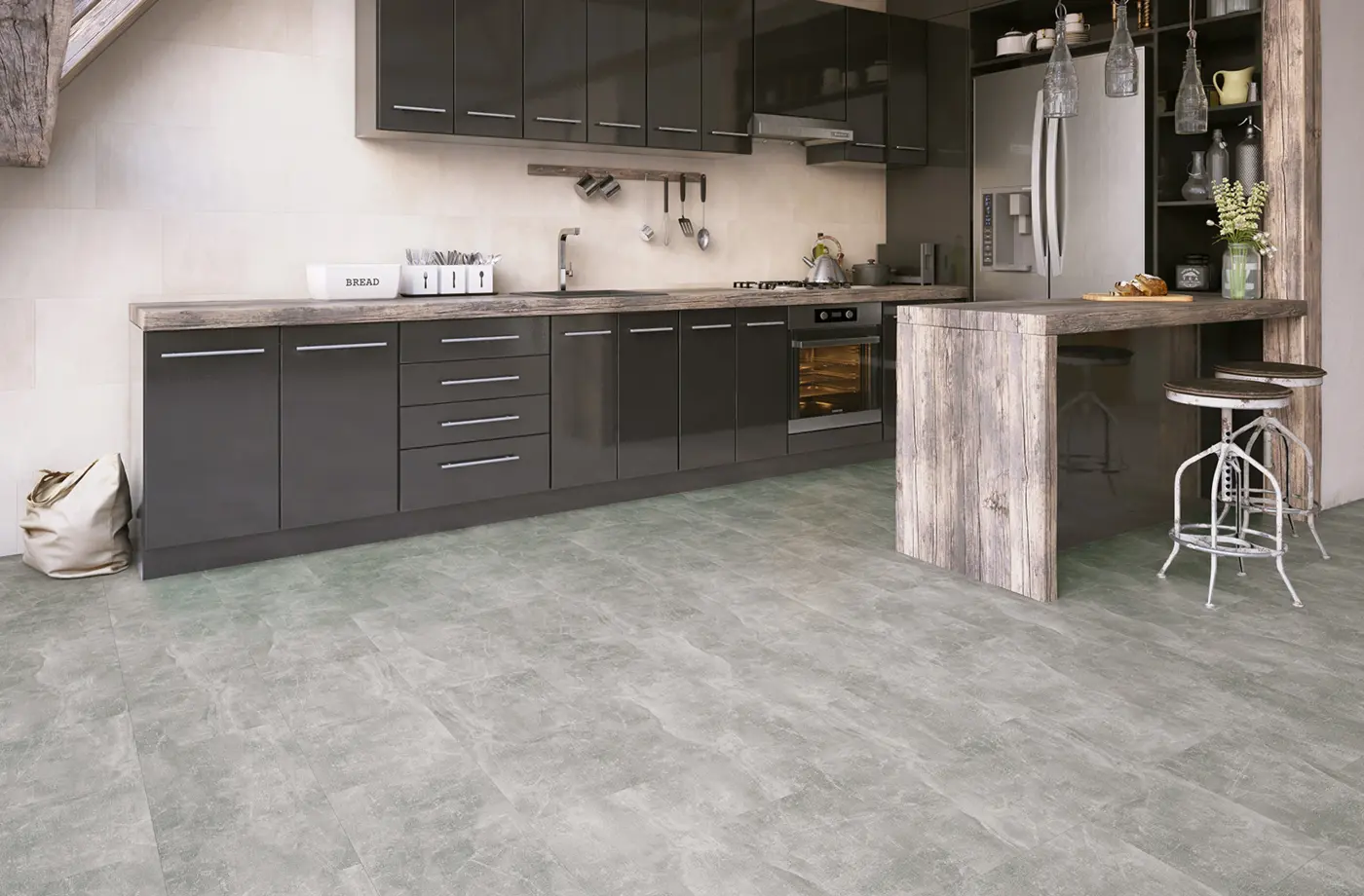 Der Laminatboden Classen Stone Industrial grau 721 vereint moderne Fliesenoptik mit einer authentischen Stein-Struktur. Sein edles Betondekor in Industrial Grau verleiht jedem Raum eine elegante, urbane Atmosphäre. Dank der robusten Oberfläche der Abriebsklasse AC4 eignet sich dieser Boden ideal für Wohnbereiche wie Wohnzimmer, Schlafzimmer, Küche oder Kinderzimmer sowie für gewerblich genutzte Räume und Homeoffice.
