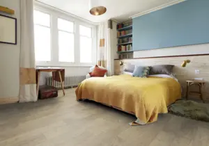 Der Boden ist nicht wasserresistent nach NALFA-Test und sollte verklebt verlegt werden. Der Trittschallschutz von 15 dB sorgt für eine angenehme Akustik im Raum.