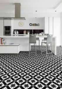 Entdecken Sie den Gerflor Primetex PVC-Boden "CORDOBA BLACK & WHITE" mit einer Breite von 3 Metern (Herstellernummer: 16482226). Dieser hochwertige Bodenbelag aus der Primetex Kollektion von Gerflor bietet eine elegante Fliesenoptik in klassischem Schwarz-Weiß-Design.