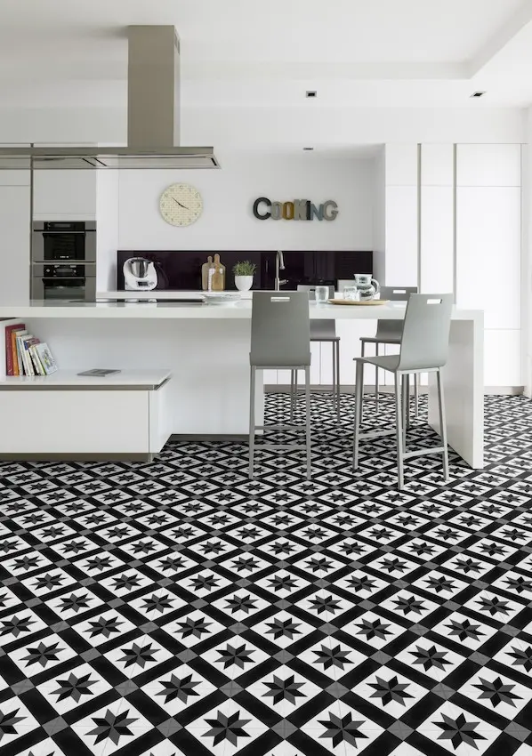 Der Gerflor Primetex CORDOBA BLACK & WHITE PVC-Boden überzeugt durch seine stilvolle Fliesenoptik im markanten Schwarz-Weiß-Design. Mit einer Breite von 2 Metern eignet er sich ideal für vielfältige Einsatzbereiche im privaten Wohnraum, vom Wohnzimmer über das Schlafzimmer bis hin zu Küche, Badezimmer und Kinderzimmer. Dank seiner modernen Oberflächenstruktur Pureclean ist der Boden besonders pflegeleicht und bietet aufgrund der R10-Rutschhemmung angenehme Sicherheit im Alltag.