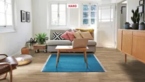 Genießen Sie die Kombination aus Ästhetik und Funktionalität mit dem Designboden HARO DISANO Project Landhausdiele 4VM Sandeiche – die ideale Basis für moderne Wohn- und Arbeitsräume.