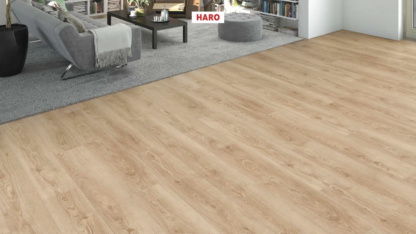 Erleben Sie mit dem HARO DISANO WaveAqua Landhausdiele 4V Eiche Victoria puro einen modernen und stilvollen Designboden, der sich durch seine authentische Holzoptik und ein ruhiges Erscheinungsbild auszeichnet. Das helle Eichendekor verleiht jedem Raum ein wohnliches Ambiente und passt dank des beigefarbenen Farbtons zu unterschiedlichsten Einrichtungsstilen.
