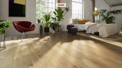 Erleben Sie die natürliche Ausstrahlung des HARO DISANO WaveAqua Designbodens in Eiche Whistler Natur. Mit seiner authentischen Holzstruktur und der eleganten Landhausdielen-Optik bringt dieser Boden zeitlose Schönheit in jeden Raum.