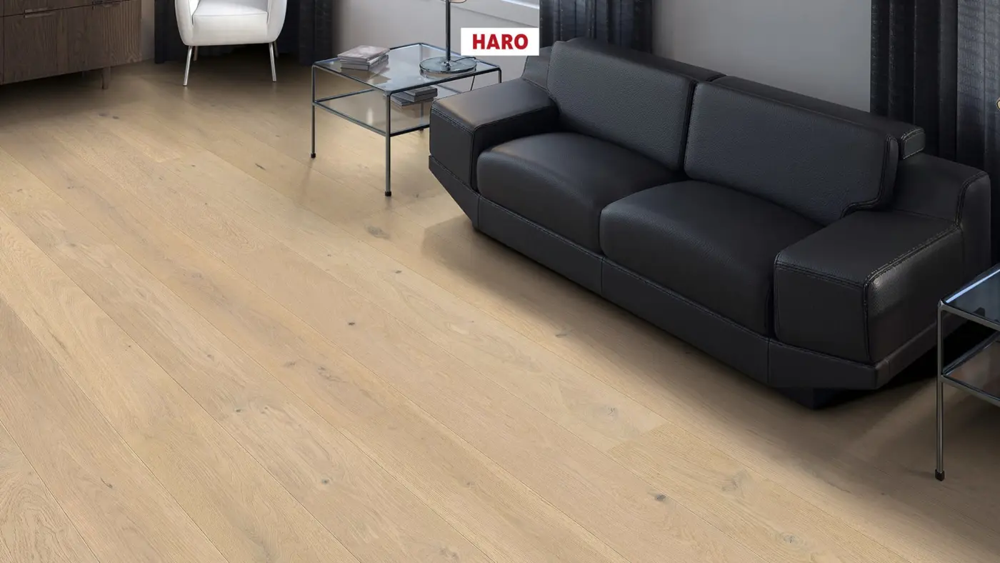 HARO Serie 2500 Landhausdiele Eiche lichtweiß Universal str. nL+ – Hochwertiges Fertigparkett für anspruchsvolle Wohnräume