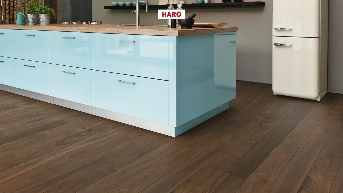 Erleben Sie hochwertige Wohnatmosphäre mit dem HARO Parkettboden der Serie 4000 Landhausdiele 180 in der Sortierung Markant. Die exklusive XXL-Diele aus amerikanischem Nussbaum setzt elegante Akzente und unterstreicht mit ihrer lebhaften Maserung die natürliche Ausstrahlung jedes Raumes. Die Oberfläche ist matt lackiert und sorgt für einen modernen, dezenten Glanz, während die vierseitige Fase den Dielencharakter unterstreicht.