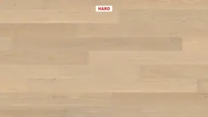Erleben Sie die exklusive HARO Serie 4000 Landhausdiele 180 in der Ausführung Eiche lichtweiß Markant Strukturiert. Das hochwertige 3-Schicht-Fertigparkett überzeugt mit seiner hellen, modernen Optik und bringt natürlichen Charme in jede Raumgestaltung. Die markante Eichenstruktur und die leicht weißliche Farbnuance verleihen dem Boden eine besondere Lebendigkeit und sorgen für eine zeitlose Atmosphäre.