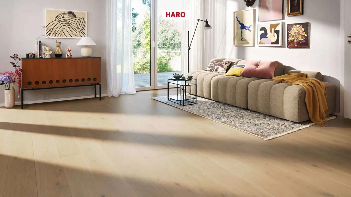 Bereichern Sie Ihr Zuhause mit authentischer Holzoptik und langlebiger Qualität – HARO Serie 4000 Landhausdiele 180 Eiche lichtweiß Sauvage ist der Inbegriff moderner Parkettästhetik.