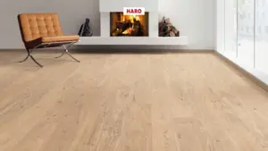 Erleben Sie mit der HARO Serie 4000 Landhausdiele 180 ein zeitloses und elegantes Parketterlebnis. Das Fertigparkett in der Ausführung „Eiche puroweiß Markant Strukturiert 4V nL+“ überzeugt durch seine helle, freundliche Optik und eine markante, strukturierte Oberfläche. Die hochwertige Eichenholz-Deckschicht mit naturaLin plus Oberflächenbehandlung sorgt für eine natürliche Ausstrahlung und unterstreicht die charakteristische Maserung des Holzes.