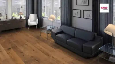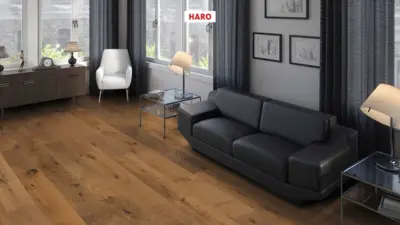 Freuen Sie sich auf einen lebhaften Bodenbelag, zertifiziert mit CE-Kennzeichnung und inspiriert von der Natur. Die Landhausdiele Maxim der Serie 4000 von HARO vereint modernes Design mit natürlicher Schönheit und schafft ein behagliches Wohnambiente.