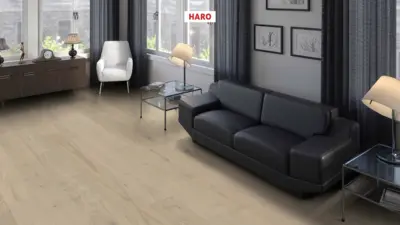 Die HARO Serie 4000 Landhausdiele Maxim Eiche sandgrau überzeugt durch zeitlose Eleganz, hohe Funktionalität und die angenehme Kombination aus natürlicher Robustheit und moderner Ausstrahlung.