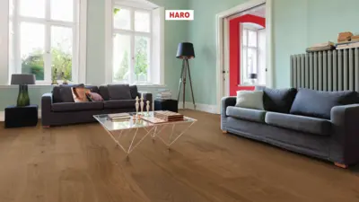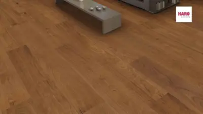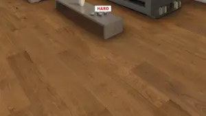 Die lebhafte Sortierung und die markanten Strukturen schaffen ein ausdrucksstarkes Bodenbild und bringen die natürliche Schönheit der Bernsteineiche optimal zur Geltung. Mit der HARO Serie 4000 Landhausdiele Plaza 240 entscheiden Sie sich für ein hochwertiges Parkett, das zeitlose Eleganz mit moderner Funktionalität verbindet.