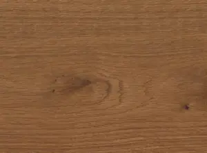 Die Landhausdiele in warmem Braunton begeistert durch ihr großzügiges Langdielenformat und die 4-seitige Fase, die jedem Raum besondere Tiefe und Charakter verleiht. Die Oberfläche ist geölt und sorgt damit für ein angenehmes Laufgefühl sowie eine einfache Pflege. Dank der mehrschichtigen Fertigparkett-Konstruktion mit einer robusten 3,5 mm Eiche-Deckschicht bietet der Boden hohe Stabilität und Langlebigkeit.