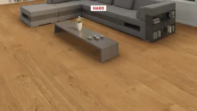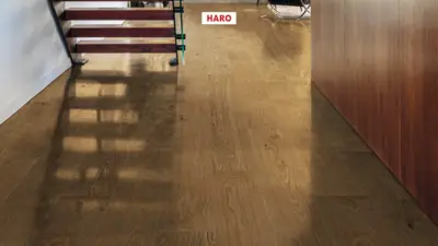 Erleben Sie den hochwertigen Parkettboden HARO Serie 4000 Landhausdiele Plaza 240 in der Ausführung Eiche Markant strukturiert nL+. Dieser Fertigparkettboden besticht durch seine großzügigen Langdielen mit einer beeindruckenden Breite von 240 mm und einer Länge von 2200 mm. Die geölte Oberfläche mit naturaLin plus sorgt für eine angenehme Haptik und unterstreicht die natürliche Schönheit des Eichenholzes im markanten, strukturierten Look.