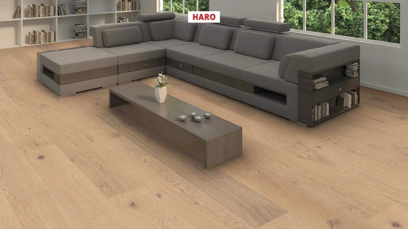 HARO Serie 4000 Landhausdiele Plaza 240 Eiche puroweiß Sauvage Strukturiert nL+ – Elegantes Fertig-Parkett für zeitlose Wohnqualität