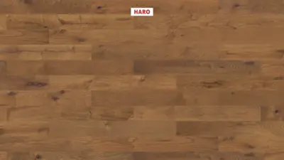 Das HARO Serie 4000 Landhausdiele Prestige Parkett in "Bernsteineiche Sauvage strukturiert nD" vereint natürliche Schönheit mit moderner Funktionalität. Die lebhafte Sortierung und die charaktervolle Maserung der Eiche sorgen für eine individuelle Optik, die jedem Raum eine warme, einladende Atmosphäre verleiht.
