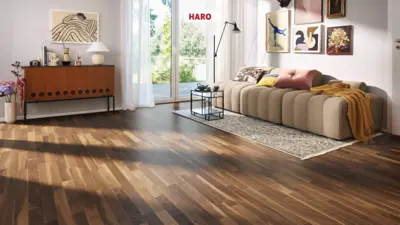 Entscheiden Sie sich für den stilvollen und langlebigen HARO Serie 4000 Stab Allegro Am. Nussbaum Favorit nD Parkettboden – eine Bereicherung für jedes Ambiente.