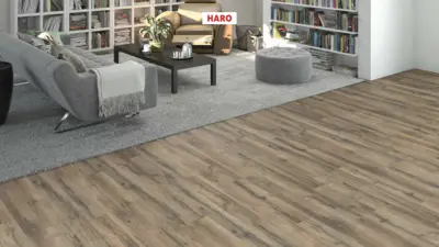 Erleben Sie den HARO Sonderedition NKL31 Silent Pro Graphiteiche Laminatboden, Artikelnummer 544658, der mit integrierter Dämmung und in ansprechender Holzoptik gestaltet ist. Dieser Boden ist Teil der exklusiven Sonderedition NKL31 und bietet eine eindrucksvolle rustikale Erscheinung in einem mittleren Grauton.