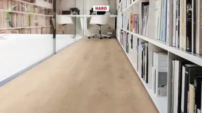 Der HARO Laminatboden gehört zur Kollektion Tritty 100 Campus und ist speziell als Stuhlrolleneignung für den privaten sowie gewerblichen Einsatz konzipiert. Er verfügt über einen Trittschallschutz von ca. 18 dB und einen Wärmedurchlasswiderstand von 0,01 K/W pro m². Die Nutzungsklassen sind 23 für den privaten und 32 für den gewerblichen Bereich.