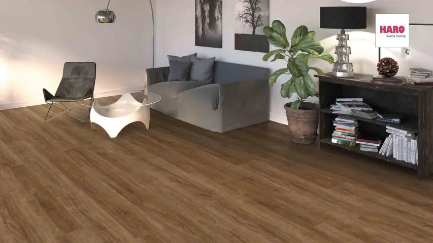 Dieser HARO Laminatboden ist eine stilvolle Wahl und verleiht jedem Raum eine elegante Note.
