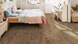 Die Verlegung des Haro Tritty 100 ist dank Top Connect Klick-System besonders einfach. Der Boden ist auch für die Installation auf Warmwasser-Fußbodenheizung bis 27°C Oberflächentemperatur geeignet. Die robuste HDF-Trägerplatte und eine Stärke von 8 mm garantieren Langlebigkeit. Das Produkt ist antistatisch und bietet eine gute Stuhlrolleneignung für private und gewerbliche Nutzung.