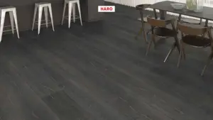 Der HARO Tritty 200 AQUA Gran Via 4V in Eiche Metallic schwarz bietet eine elegante und lebhafte Holzoptik. Dieser Laminatboden ist ideal für den Einsatz in verschiedenen Räumlichkeiten wie Badezimmer, Gewerbe, Homeoffice, Kinderzimmer, Küche, Schlafzimmer und Wohnzimmer geeignet.