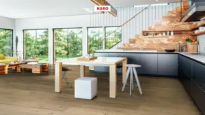 Entdecken Sie den exklusiven Laminatboden HARO Tritty 200 AQUA in der Version Gran Via 4V Silent CT mit dem charmanten Dekor Eiche Sicilia natur. Dieser Bodenbelag kombiniert ästhetisches Design mit herausragender Funktionalität und bietet dank seiner integrierten Dämmung ein komfortables Gehgefühl.