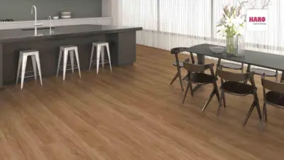 Entdecken Sie die HARO Tritty 200 AQUA Landhausdiele 4V in der eleganten Ausführung Eiche Eleganza natur. Dieser hochwertige Laminatboden verleiht jedem Raum ein natürliches und stilvolles Ambiente.