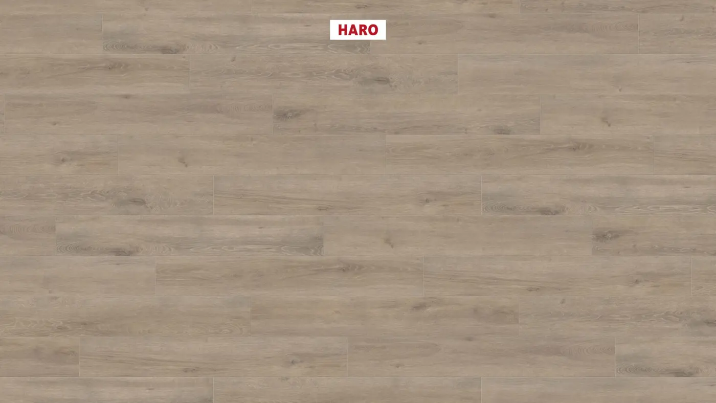 Mit der Haro Tritty 200 AQUA Serie erhalten Sie einen hochwertigen Laminatboden, der speziell entwickelt wurde, um sowohl in privaten als auch in gewerblichen Räumen eine exzellente Leistung zu bieten. Diese Landhausdiele in Eiche Veneto mocca überzeugt durch ihr ruhiges Erscheinungsbild und die Holzoptik im hellen Grauton.