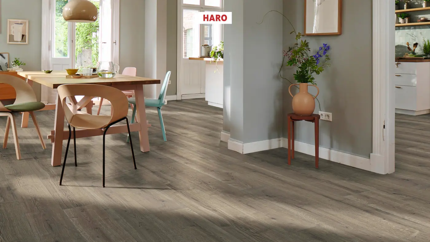 HARO Tritty 90 Landhausdiele 4V Eiche Bari grau – Hochwertiger Laminatboden in Holzoptik