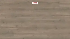 Der Laminatboden HARO Tritty 90 Landhausdiele 4V Eiche Bari grau kombiniert moderne Eleganz mit robuster Funktionalität. Mit seiner authentischen Holzoptik in einem ruhigen Eiche-Dekor und dem mittleren Grauton überzeugt dieser Boden sowohl optisch als auch in Sachen Vielseitigkeit. Die vierseitige Fase betont das klassische Landhausdielen-Format und verleiht jedem Raum eine natürliche, großzügige Atmosphäre.