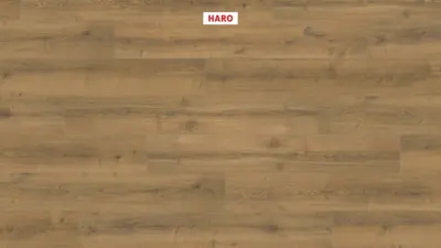 Der Laminatboden stammt von HARO, einem renommierten Hersteller in der Bodenbelagsbranche. Die Tritty 90 Kollektion garantiert Langlebigkeit und hohen Komfort, geeignet sowohl für private als auch gewerbliche Anwendungen.