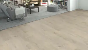 Der HARO Tritty 90 Laminatboden in der Variante Landhausdiele 4V Silent Pro Eiche Torri grau (Produktnummer: 544697) bietet eine elegante und hochwertige Bodenlösung. Dieser Bodenbelag kombiniert modernes Design mit hervorragenden technischen Eigenschaften, ideal für verschiedene Räume wie das Gewerbe, Homeoffice, Kinderzimmer, Küche, Schlafzimmer und Wohnzimmer.