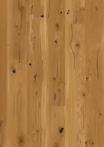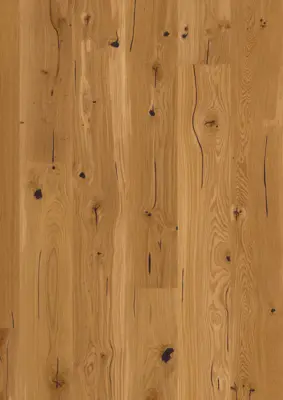 Mit dem durchdachten Aufbau als 3-Schicht-Fertigparkett und einer Gesamtstärke von 14 mm bietet dieser Parkettboden eine ausgezeichnete Stabilität sowie ein angenehmes Laufgefühl. Die 3,5 mm starke Nutzschicht garantiert eine hohe Strapazierfähigkeit; das ProConnect 5G Klick-System ermöglicht zudem eine schnelle, sichere Verlegung. Die umlaufende V4-Fase unterstreicht den klassischen Landhausdielen-Charakter und sorgt für eine klare Linienführung.