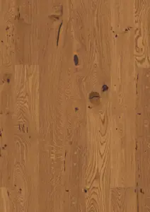 Der Joka 535 LD Calgary Eiche caramell gebürstet V2 Fertig-Parkettboden überzeugt mit seiner natürlichen Optik und der hervorragenden Qualität. Die Oberfläche aus rötlich getöntem Eichenholz ist geölt und gebürstet, wodurch die individuelle Maserung und der warme Farbton besonders zur Geltung kommen. Die Landhausdiele bietet ein lebhaftes Erscheinungsbild und sorgt für ein stilvolles Ambiente in jedem Raum.
