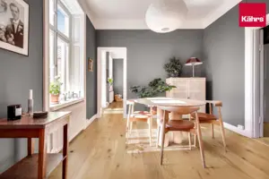 Kährs Flora Collection Eiche Yarrow eignet sich für private und gewerbliche Bereiche – auch für den Einsatz auf Treppenstufen und die Nutzung mit Stuhlrollen. Kombinieren Sie Funktionalität und stilvolles Ambiente mit einem Qualitätsparkett, das in Sachen Pflegeleichtigkeit, Haptik und Design Maßstäbe setzt.