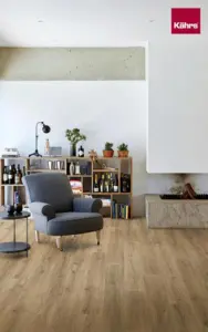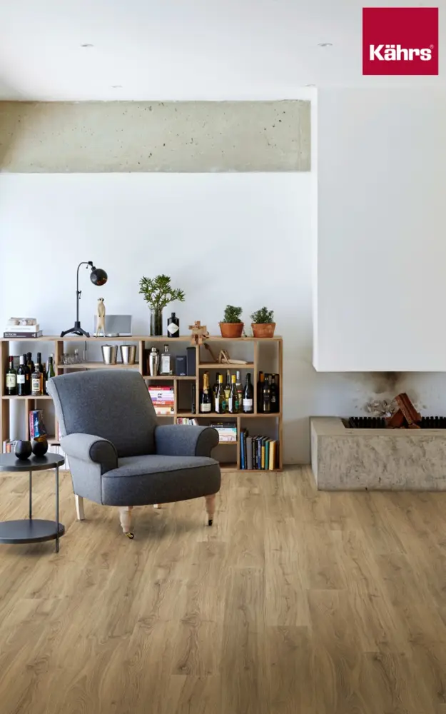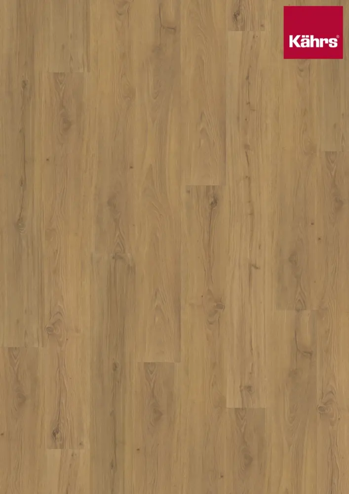 Der Kährs Vinylboden wird von einem SPC Rigid Kern unterstützt und ist in der Landhausdiele-Stilrichtung erhältlich. Obwohl er keine Kanten-Imprägnierung für zusätzlichen Quellschutz bietet, bleibt er ein langlebiger Bodenbelag für diverse Anwendungen.
