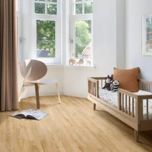 Technische Aspekte und Funktionen: Der Boden hat eine Stärke von 2,35 mm und bietet einen Trittschallschutz von etwa 10 dB bei empfohlener Unterlage. Er eignet sich für Wohn- und Geschäftsräume, einschließlich Badezimmern und Küchen, da er wasserresistent ist und über die Brandschutzklasse B fl-s1 verfügt. Weiterhin unterstützt er Fußbodenheizungen bei einer Maximaltemperatur von 27°C.