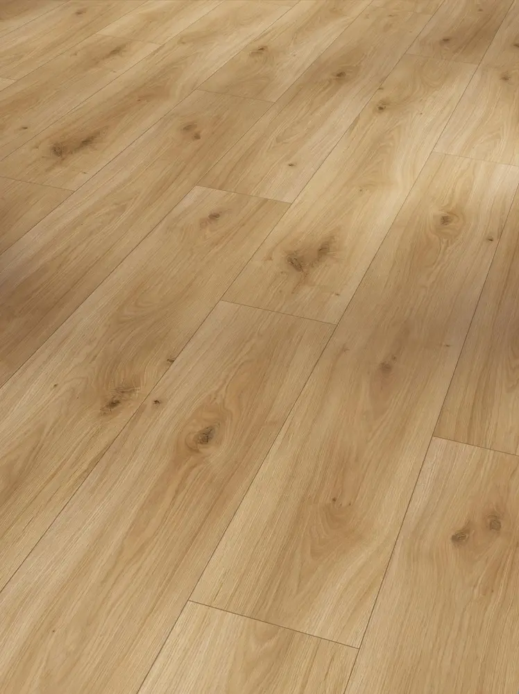 Mit dem Parador Laminat Basic 200 Eiche Horizont natur 4V Seidenmatte Struktur erleben Sie eine hochwertige Bodenlösung im natürlichen Landhausdielen-Stil. Das hellbraune Eichen-Dekor bringt eine freundliche, warme Ausstrahlung in jeden Raum und sorgt mit seiner seidenmatten Oberflächenstruktur für ein elegantes, modernes Ambiente. Die authentische 4-seitige Fuge unterstreicht das natürliche Erscheinungsbild des Bodens.