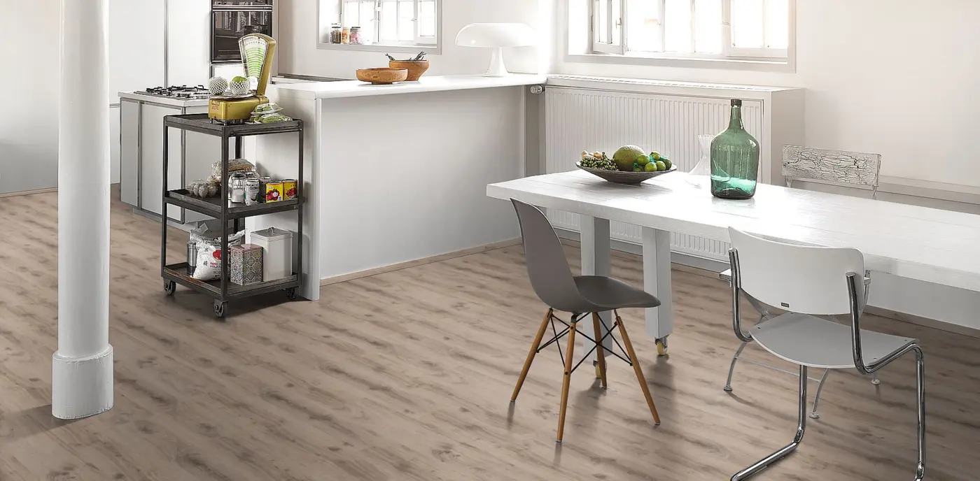 Die antistatische Oberfläche, die Rutschhemmung R9 sowie die Eignung für Stuhlrollen machen den Boden alltagstauglich – im privaten wie im gewerblichen Bereich. Die Brandklassifizierung C fl - s1 und die Kompatibilität mit Warmwasser-Fußbodenheizungen sprechen für zusätzliche Sicherheit und Komfort.